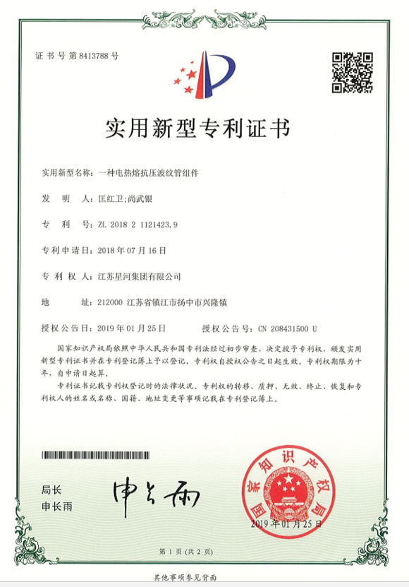 實用新型名稱:一種電熱熔抗壓波紋管組件 專利號:ZL 2018 2 1121423.9